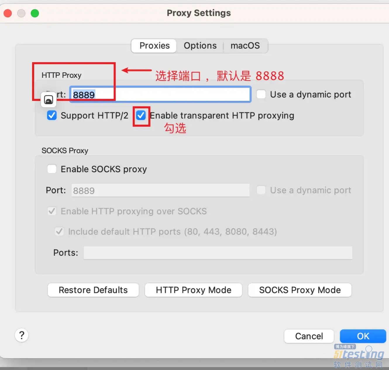 1. 打开 charles,打开 proxy -> macOS proxy (图一)